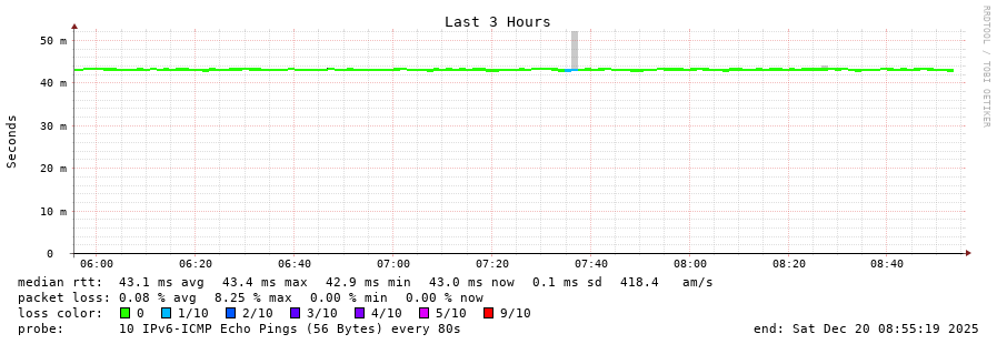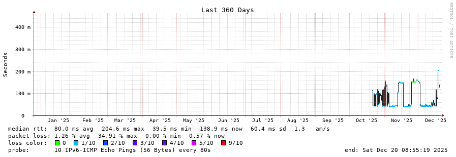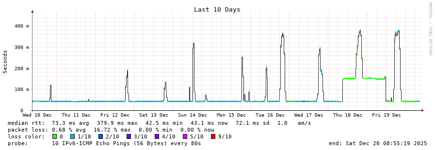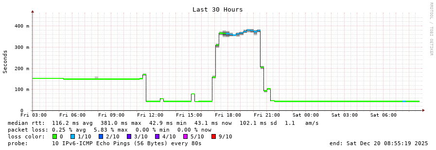 traceroute to 2001:4350:1:1::ff90 (2001:4350:1:1::ff90), 30 hops max, 80 byte packets  -  Generated at 2025-12-07 15:00:01