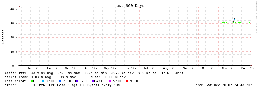 traceroute to 2001:b68:d:0:ee08:6bff:fe73:2da0 (2001:b68:d:0:ee08:6bff:fe73:2da0), 30 hops max, 80 byte packets - Generated at 2025-12-07 15:00:01