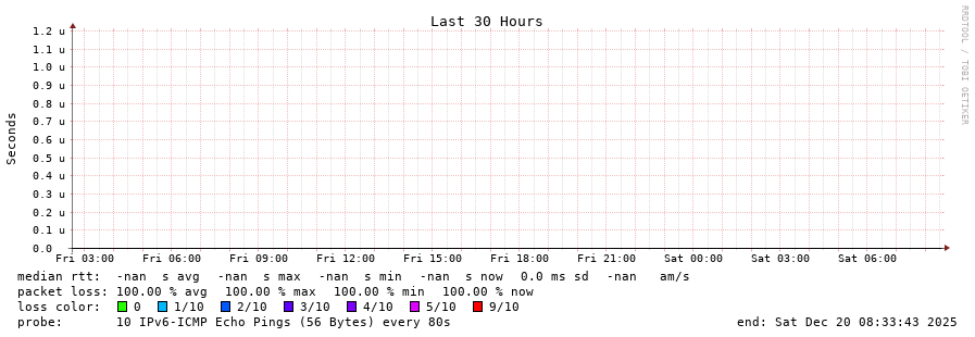 traceroute to fd69:226f:3a3c::2 (fd69:226f:3a3c::2), 30 hops max, 80 byte packets - Generated at 2025-12-07 15:00:01