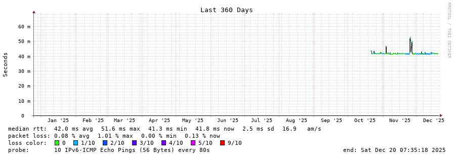 traceroute to 2a0b:2f00:0:234::151 (2a0b:2f00:0:234::151), 30 hops max, 80 byte packets - Generated at 2025-12-07 15:00:01