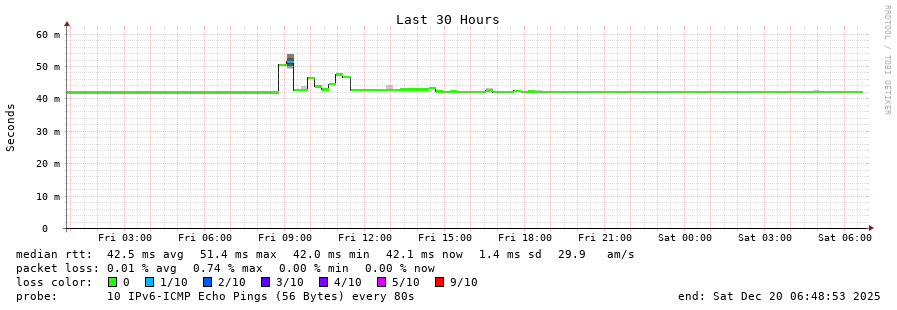 traceroute to 2a03:8f84::f1b6:9702:29c:9062 (2a03:8f84::f1b6:9702:29c:9062), 30 hops max, 80 byte packets - Generated at 2025-12-07 15:00:01