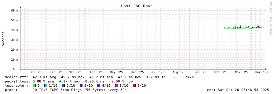 17 > 2001:730:2601:f005::2 (2001:730:2601:f005::2) [AS6830] 42.114ms 42.133ms 42.038ms