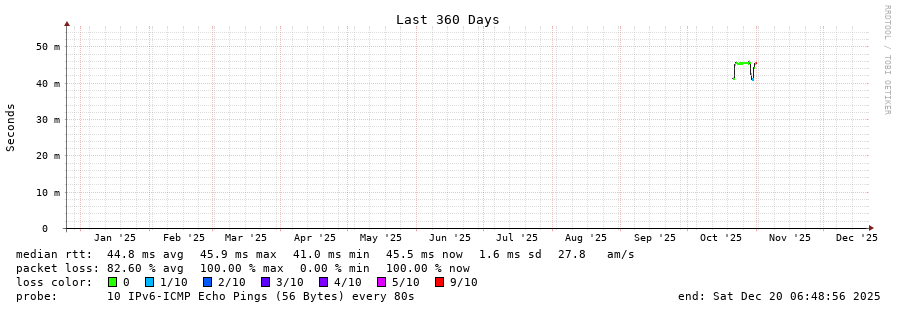 traceroute to 2a02:2f05:2113:7f00:220:4aff:fee0:220f (2a02:2f05:2113:7f00:220:4aff:fee0:220f), 30 hops max, 80 byte packets - Generated at 2025-12-07 15:00:01