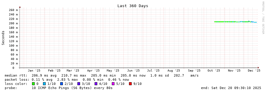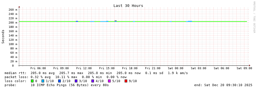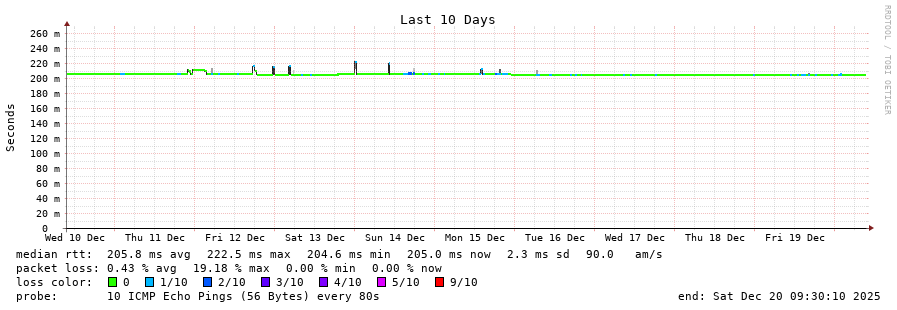 11 > 195.22.220.127 (195.22.220.127) [AS6762] 205.735ms 205.578ms 205.592ms