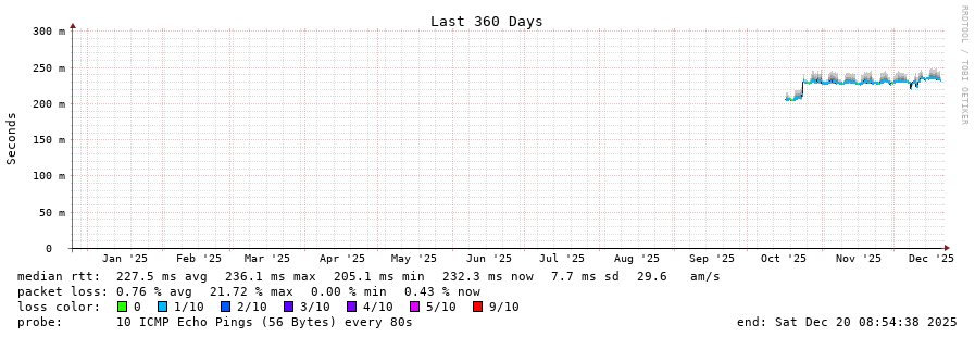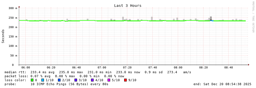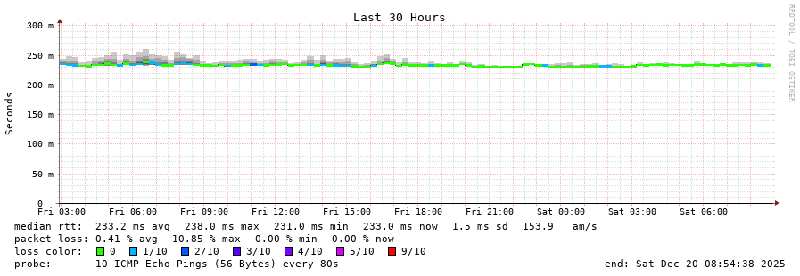 20 > 25.43.0.138.globenet.net (138.0.43.25) [AS52320] 219.424ms 219.420ms 219.527ms
