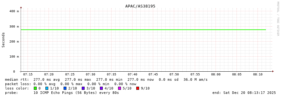45. Median RTT 0.277 seconds
